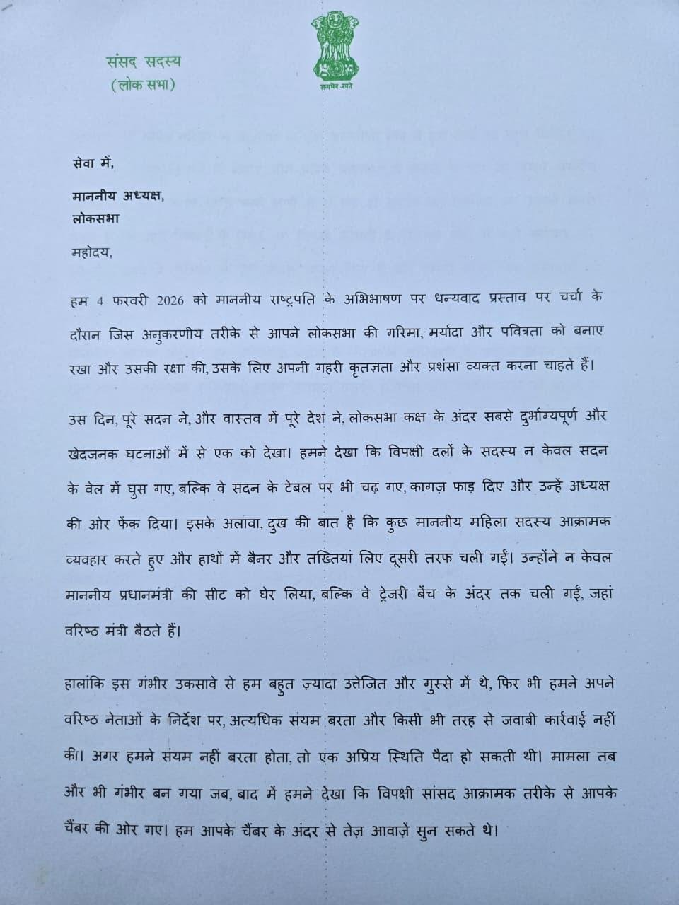 बीजेपी की महिला सांसदों ने लोकसभा अध्यक्ष को लिखा पत्रबीजेपी की महिला सांसदों ने लोकसभा अध्यक्ष को लिखा पत्रjansamvadexpressFebruary 10, 2026February 10, 20260