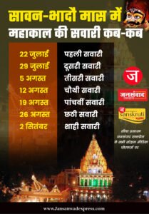 उज्जैन | 22 जुलाई यानी आज से सावन माह की शुरुवात हो चुकी है , उज्जैन में बाबा महाकाल की सावन में सवारी निकलती है , सावन ही नहीं भादो माह में भी बाबा नगर भ्रमण पर निकलते है , बाबा की सवारी का जनसंवाद एक्सप्रेस पर आप सीधा प्रसारण देख सकते है , सभी सवारी को live देखने के लिए हमारे चैनल को subscribe जरुर करे |