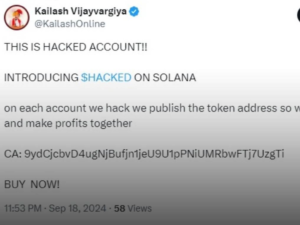 हैकर्स ने विजयवर्गीय का अकाउंट हैक करने के बाद क्रिप्टोकरेंसी का प्रमोशन किया। 18 सितंबर की रात करीब 11.30 बजे जो अकाउंट हैक हुए, उनमें दुनिया के गोल ब्राजील, हैदराबाद मेट्रो, सैंटा क्रूज काउंटी आदि प्रमुख अकाउंट्स शामिल हैं। इसी तरह 2021 में प्रधानमंत्री नरेंद्र मोदी का एक्स अकाउंट भी हैक हो चुका है।