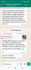 सोशल मीडिया पर ग्रुप के जो स्क्रीन शोर्ट चल रहे है वह पोस्ट एक साल पुरानी है , वह उनके द्वारा नहीं डाली गई वही एक छात्र के द्वारा ही डाली गई वह भी रमजान मुबारक बाद की थी | ग्रुप में पोस्ट को लेकर जो बहस हुई वह भी स्टूडेंट ही कर रहे थे उन्हें चुप रहने के लिए भी विभाग प्रभारी द्वारा कहा गया था उसमे मेरी कोई पोस्ट नहीं है |