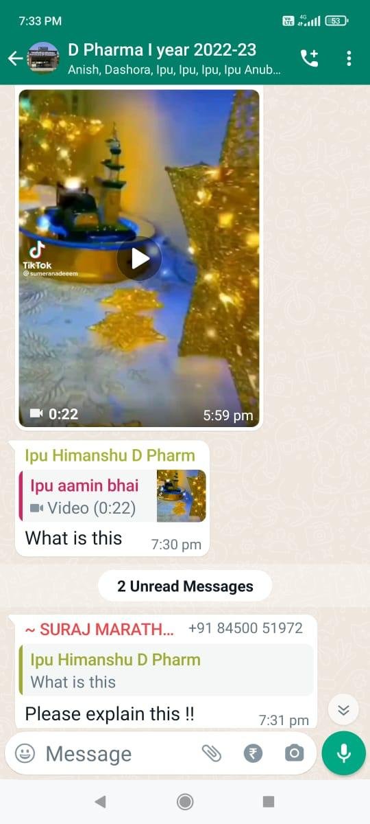 03 व्हाट्स अप ग्रुप के माध्यम से छात्रों को धार्मिक जानकारिया देते है ,व्हाट्स अप पर नमाज पढने के तरीके डाले गए