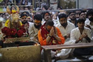 उज्जैन || विश्व प्रसिद्ध महाकालेश्वर मंदिर में गुरुवार सुबह होने वाली भस्म आरती में शामिल होने के लिए बॉलीवुड अभिनेता संजय दत्त उज्जैन पहुंचे। संजय दत्त ने नंदी हाल में बैठकर आरती में भगवान महाकाल का आशीर्वाद लिया। संजय दत्त रात करीब 3 बजे महाकाल मंदिर पहुंचे। दो घंटे बैठकर भगवान महाकाल की भस्म आरती में शामिल हुए। इस दौरान वे महाकाल का जाप करते नजर आए। आरती के बाद संजय दत्त ने देहरी से ही भगवान महाकाल के दर्शन कर आशीर्वाद लिया।