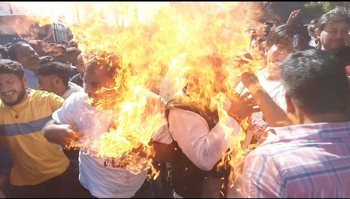 आन्दोलन के दोरान दो युवको ने खुद पर पेट्रोल दाल कर आत्मदाह का प्रयास किया