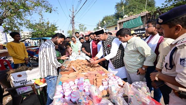 मंत्री श्री विश्वास कैलाश सारंग ने स्थानीय विक्रेता से मिट्टी के दीपक खरीद कर दिया ‘वोकल फॉर लोकल’ का संदेश