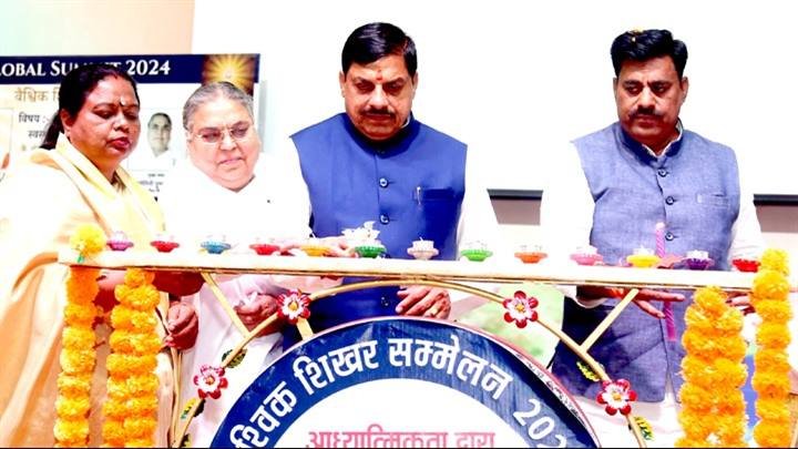 मुख्यमंत्री डॉ. मोहन यादव ने ब्रह्मकुमारीज सुख शांति भवन में वैश्विक शिखर सम्मेलन में दीप प्रज्ज्वलित किए।