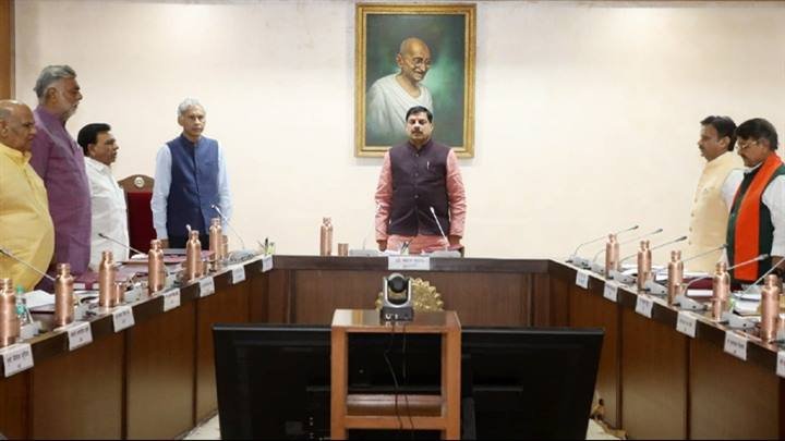 मुख्यमंत्री डॉ. मोहन यादव की अध्यक्षता में मन्त्रि-परिषद की बैठक मंत्रालय में वंदे मातरम गान के साथ आरंभ हुई।