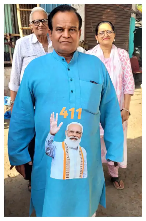 वे कहते हैं कि मैं सांई बाबा के साथ मोदी भक्त भी हूं। इसलिए उनकी तस्वीर वाला कुर्ता पहनकर प्रचार कर रहा हूं। मोदीजी के नाम पर जनता मुझे ही वोट देंगी। महाजन करोड़पति उम्मीदवार हैं। उनका चुनाव चिह्न ‘हांडी’ है। यह उन्होंने खास तौर पर मांगा था, क्योंकि वे आधारशिला स्थित सांई मंदिर में हर साल बड़े स्तर पर खिचड़ी भंडारे का आयोजन करते हैं। इसलिए ही अपना मनपसंद का चुनाव चिह्न मांगा।