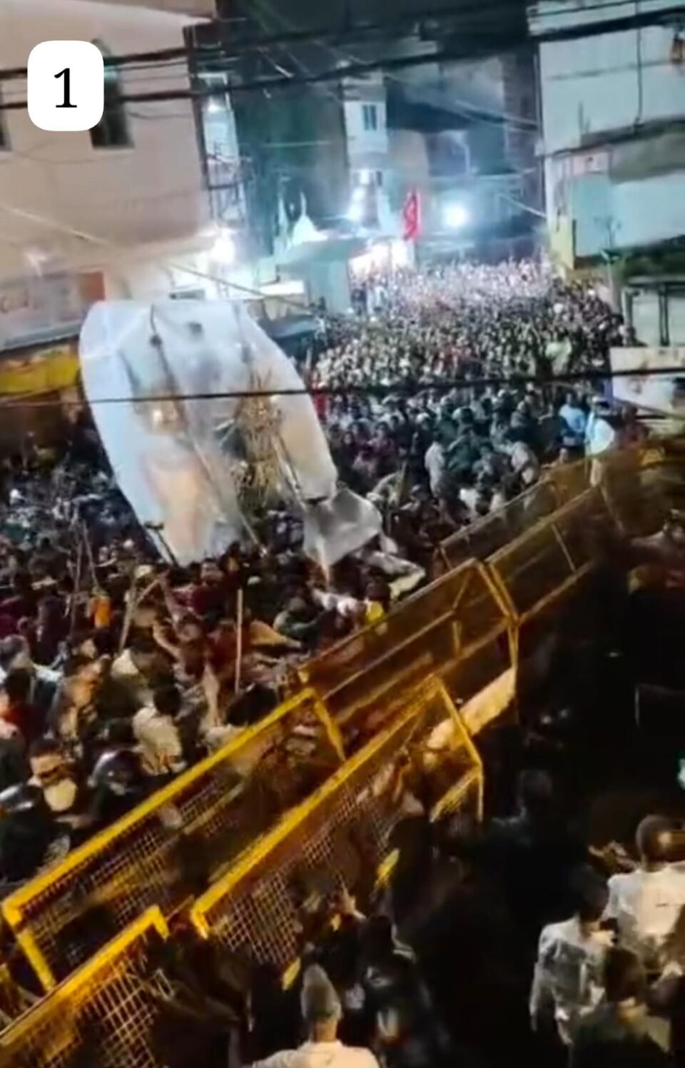 उज्जैन।। शनिवार देर रात को उज्जैन में निकलने वाले मोहर्रम के जुलूस में रविवार तड़के चार बजे आयोजकों की हुड़दंगी का एक मामला सामने आया ,बेगमबाग घोड़ा समिति के द्वारा जुलूस निकालने के दौरान एक ऐसे मार्ग पर घुसना चाहा जो तय रूट में ना होने के चलते प्रशासन द्वारा बैरीकेट लगा कर बंद कर रखा था बावजूद प्रतीकात्मक घोड़ा उठाकर चल रहे युवकों ने बैरीकेट गिराते हुए उक्त मार्ग में घुसना चाहा ,बैरीकेट गिरने से नजदीक खड़े पुलिस कर्मी घायल हो गए ।