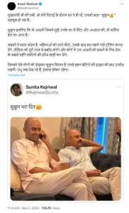 दरअसल, सुप्रीम कोर्ट ने 2 सितंबर को स्वाति से मारपीट केस में बिभव को जमानत दी थी। वे 100 दिनों से जेल में थे। उसी दिन शराब नीति घोटाले में AAP नेता विजय नायर को भी बेल मिली थी। सुनीता ने अगले दिन X पर दोनों की साथ में एक फोटो शेयर की थी।