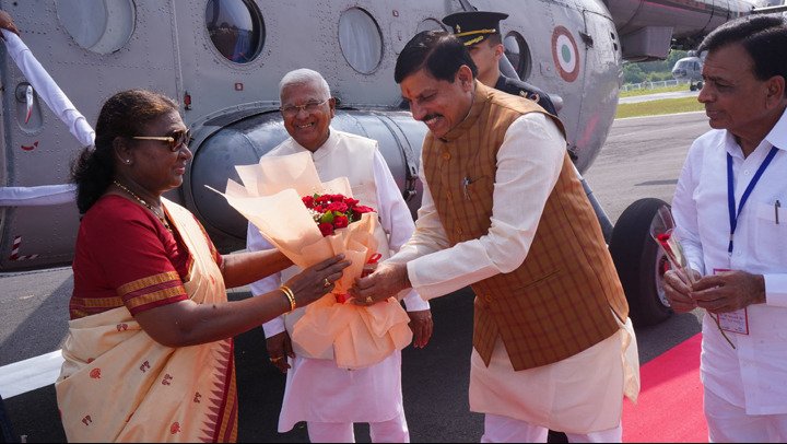 उज्जैन | देश की 15 वी राष्ट्रपति माननीय द्रोपदी मुर्मू आज उज्जैन आई हुई है सुबह 9 बजकर 45 मिनिट पर उनका हेलिकोप्टर नागझिरी पुलिस लाइन स्थित हेलीपेड पर पहुंचा जहा मुख्यमंत्री डॉ मोहा यादव ,उपमुख्यमंत्री जगदीश देवड़ा ,प्रभारी मंत्री गोपाल टेटवाल ,विधायक अनिल जैन सांसद अनिल फिरोजिया और आईजी एसपी कलेक्टर ने स्वागत किया |