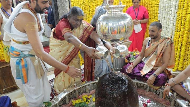 राष्ट्रपति श्रीमती द्रौपदी मुर्मु ने महाकाल मंदिर में दर्शन कर पूजन अर्चन किया