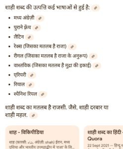 शाही शब्द उर्दू से लिया गया शब्द नहीं है , शाही शब्द उर्दू से नहीं, बल्कि फ़ारसी से लिया गया है. शाही शब्द का मतलब होता है राजसी. जैसे, शाही महल या शाही दरबार जबकि सवारी शब्द उर्दू से लिया गया शब्द है , इसी तरह सवारी एक उर्दू शब्द जरुर है जबकि उसे फ़ारसी से लिया गया है |