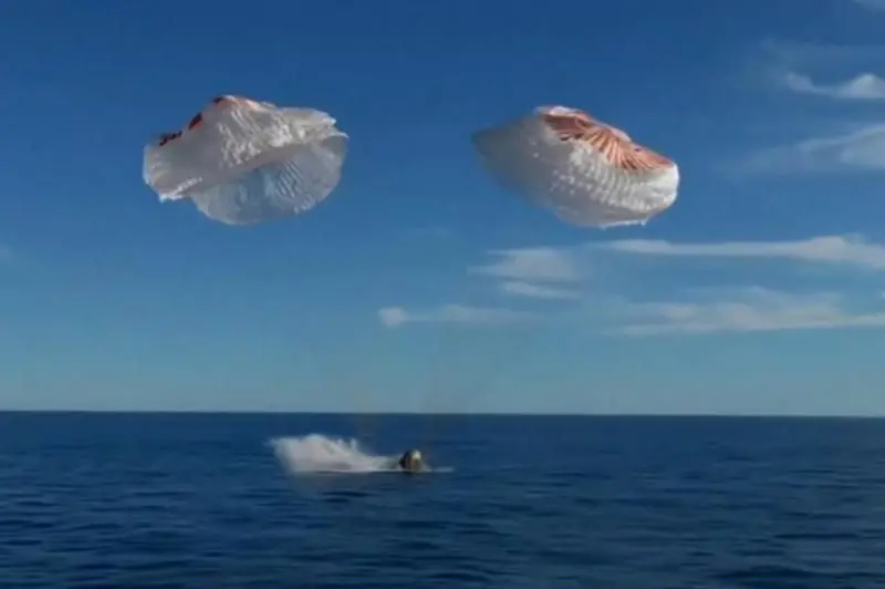 क़रीब तीन बजकर 24 मिनट पर पहले ड्रैगन कैप्सूल के दो पैराशूट खुले जिससे इसकी रफ़्तार और धीमी हो गई. इस दौरान एक ज़ोर का झटका लगा और कैप्सूल की रफ़्तार और धीमी हो गई.