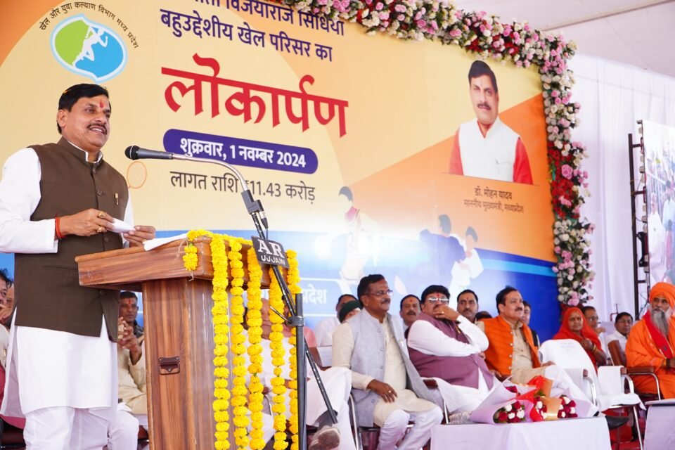 मुख्यमंत्री डॉ. यादव मध्यप्रदेश के 69वें स्थापना दिवस पर भगवान श्रीमहाकाल की पावन नगरी उज्जैन में 11.43 करोड़ रूपये की लागत से नव-निर्मित बहुउद्देशीय इनडोर खेल परिसर के लोकार्पण कार्यक्रम को संबोधित कर रहे थे। उन्होंने प्रदेशवासियों को मध्यप्रदेश स्थापना दिवस, दीपावली एवं गोवर्धन पूजा की शुभकामनाएं भी दी।