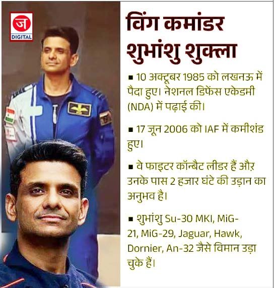 भारतीय वायुसेना के ग्रुप कैप्टन और एस्ट्रोनॉट शुभांशु शुक्ला अंतरिक्ष में जाने वाले दूसरे भारतीय होंगे। इससे पहले साल 1984 में अंतरिक्ष यात्री राकेश शर्मा ने अंतरिक्ष की यात्रा की थी। राकेश शर्मा ने अंतरिक्ष से कहा था, ‘सारे जहां से अच्छा हिंदुस्ता हमारा’