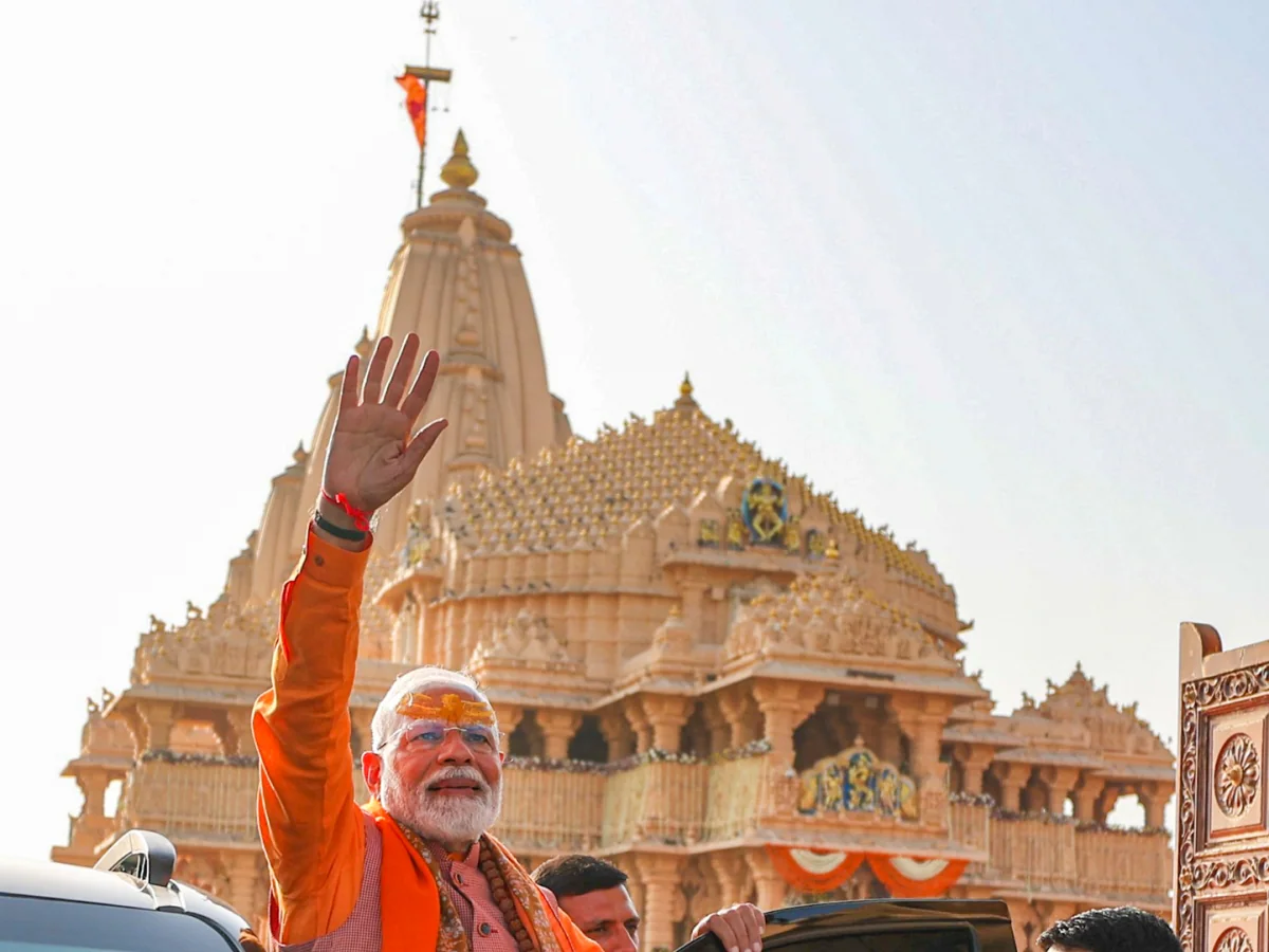 प्रधानमंत्री मोदी ने सोमनाथ मंदिर में पूजा की:शिवलिंग पर जल चढ़ाया, फूल अर्पित कर और पंचामृत से अभिषेक किया।