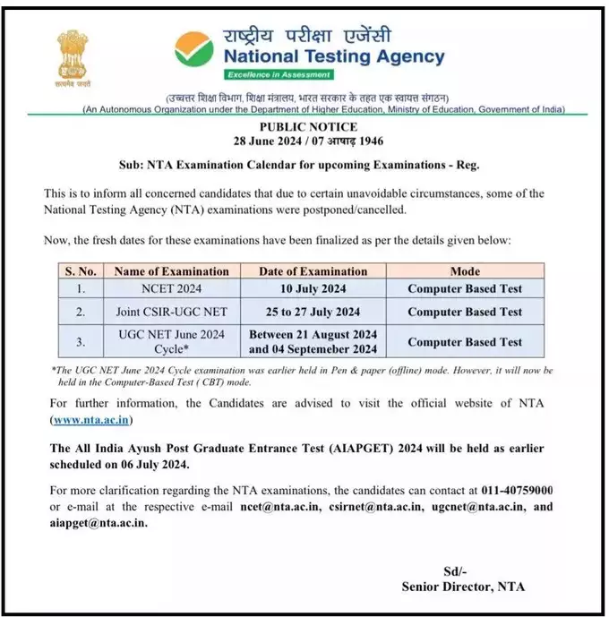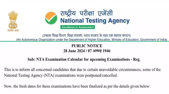NTA ने घोषित की NET 2024 परीक्षाओ की नई तारीख : 21 अगस्त से 4 सितम्बर के बीच होगी परिक्षाए