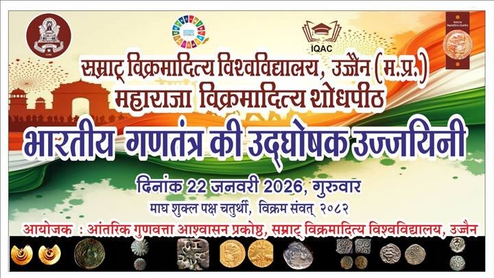 उज्जैन || उज्जैन, उज्जयिनी, प्रतिकल्पा, कनकश्रृंगा, अवंतिका आदि कई नामों से पहचानी जाने वाली यह आध्यात्मिक नगरी प्रशासनिक और सांस्कृतिक इतिहास की भी भूमि रही हैं और प्राचीन शासन व्यवस्था में गणतंत्र का प्रथम उद्घोष इसी उज्जैन से हुआ था, को लेकर सम्राट विक्रमादित्य विश्वविद्यालय उज्जैन और महाराजा विक्रमादित्य शोधपीठ द्वारा संगोष्ठी का आयोजन कर ऐतिहासिक प्रमाणों की पुष्टि की जाएगी। आंतरिक गुणवत्ता आश्वासन प्रकोष्ठ, सम्राट विक्रमादित्य विश्वविद्यालय, उज्जैन और महाराजा विक्रमादित्य शोधपीठ के संयुक्त तत्वावधान में “भारतीय गणतंत्र की उद्‌घोषक उज्जयिनी“ विषय पर 22 जनवरी को विश्वविद्यालय के स्वर्ण जयंती सभागृह में प्रातः 11.30 बजे से संगोष्ठी आयोजित की जाएगी।